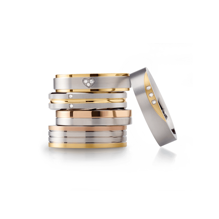 Die gelungene Kombination: Hochwertiges Titan, teilweise goldplattiert oder hochglanzpoliert – und in sorgfältiger Handarbeit gefasste Vollschliff-Brillanten.