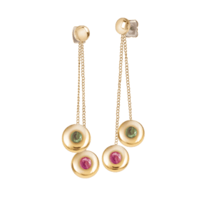 From light rosé to Bordeaux and yellow tones to emerald green or bright blue: the precious cabochon-cut stones sparkle in endless nuances, sometimes pastel soft, sometimes full-toned strong, and make each piece of jewellery unique – after all, tura mali means “stone with mixed colours”. The interplay of the “stone of the rainbow”, as it is also called, with simple, round settings and delicate chains made of gold-plated titanium creates magical moments with a modern touch.